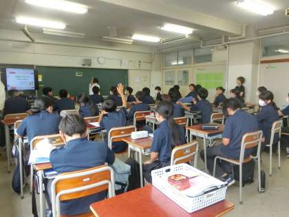 本日、6時間目に、プロジェクト参加に向けて、本校にユニクロの社員さんをお迎えし出張授業を行っていただきました。