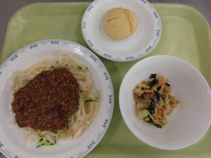 本来はおろししょうがやにんにく、酢やラー油などの調味料は自分で調整し、自分好みの味に仕上げて食べることができるそうです。給食では肉みそに加えて仕上げています。