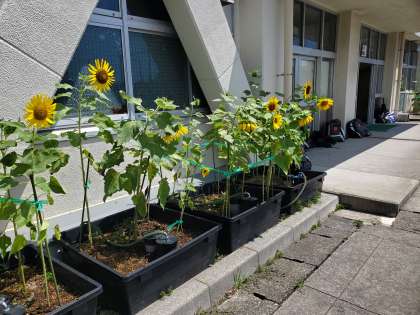 ※写真は、2年生が育てている「はるかのひまわり」です。