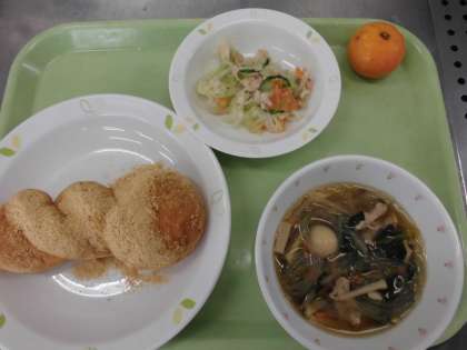 今日はリクエストで多かったきな粉あげパンと春雨スープです。