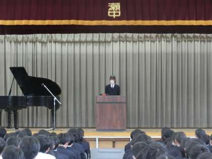 本日行われた合唱コンクールの全校リハーサルでは、はじめに実行委員長から全校生徒へ、本番に向けての熱い想いを伝えてくれました。