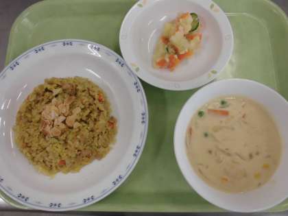 今日は給食では定番食材のじゃがいもを使ってポテトサラダをつくりました。