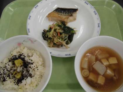 今日はごはんと一緒に炊いてさつま芋ご飯にしました。