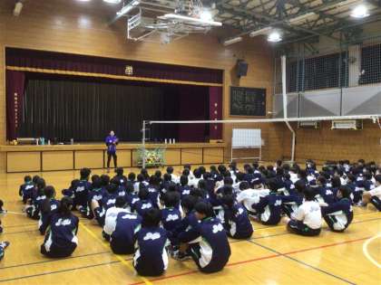 5・6時間目に「オリパラ種目体験授業」でバレーボールの授業を実施しました。