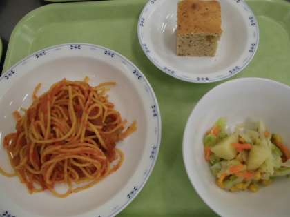 給食のアラビアータは怒ったように顔が赤くなるほど辛くはしていないので安心して食べてください。
