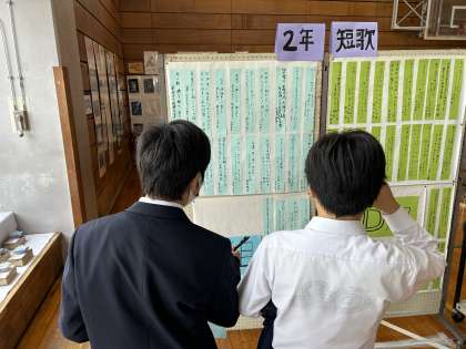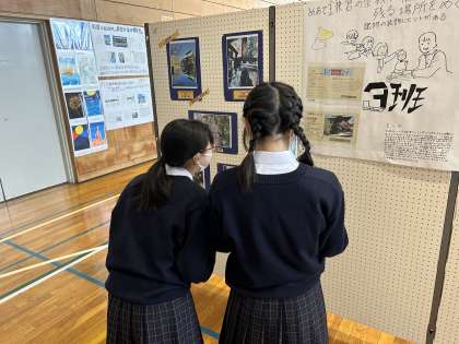3月9日(土)の土曜授業日に学芸発表会展示の部が行われました。生徒は前日に学年ごとに見学しました。しおりを見ながら、作品の良い部分に注目して、観賞する様子が見られました。準備や片づけは、学発実行委員を中心に行いました。委員の皆さん、手伝ってくれた係の皆さん、ありがとうございました。