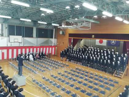3月19日(火)第75回卒業証書授与式を執り行いました。「卒業の言葉」では3名の代表生徒が3年間の様々な気持ちを思い出にのせて語り、「卒業の歌」では3年間の思いを込めて歌いました。とても立派な姿でした。