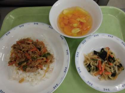 「プル」は火、「コギ」は肉を表わします。日本のすき焼きと焼き肉の中間のような料理です。牛肉で作るのが一般的ですが、本場韓国では豚肉や鶏肉など色々なバリエーションがあるそうです。給食では豚肉で作りました。