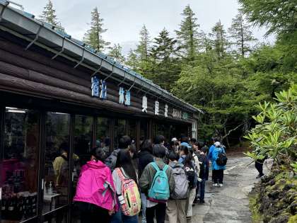 バスで五合目まで行き、奥庭荘でお弁当を食べました。