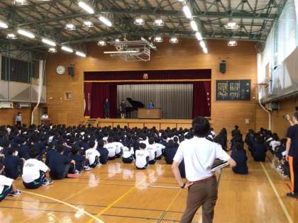 終業式では、各学年の代表生徒から今学期の成長と振り返り、2学期に向けての抱負が述べられました。式の後には、学芸発表会委員長から今年の学発のスローガンが発表されました。2学期には、学芸発表会をはじめ、職場体験や修学旅行などの学校行事が予定されています。