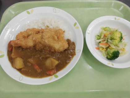 受検に勝つ!にかけてチキンカツをのせたカレーライスにしました。