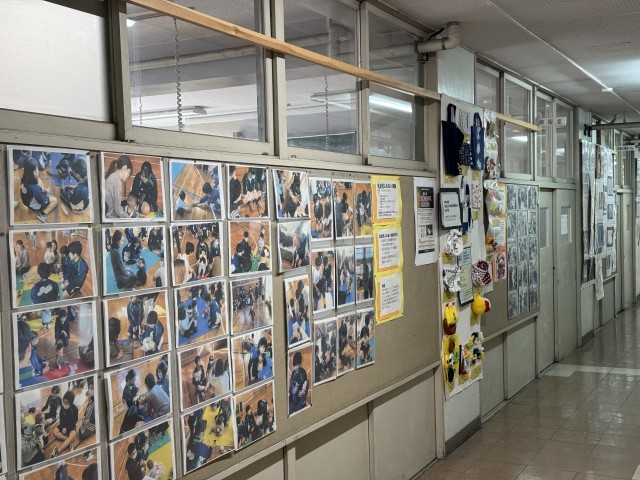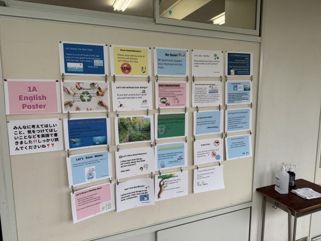廊下に生徒たちの作品を掲示してあります。学校公開等でご来校の時には、ぜひご覧ください。
