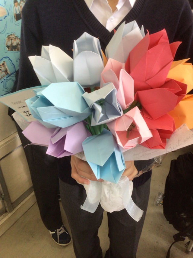 17日の放課後、3年生から2年生に向けて感謝の気持ちを伝える会が行われました。3年生からは2年各クラスに素敵な花束が贈られました。また、2年生は「YELL」を歌い、3年生に向けての感謝の気持ちを歌とともに伝えました。次は2年生が瀬田中を引っ張っていく存在となります。3年生の気持ちを忘れず、3年生としてふさわしい姿とはどういうものか今から考えていきましょう!