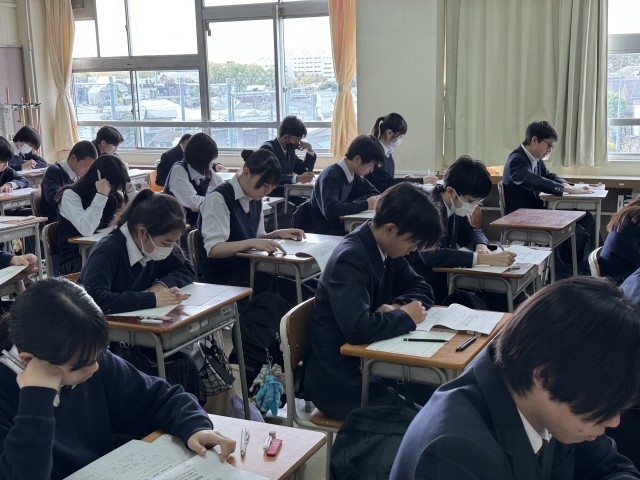 本日、3年生が全国学力・学習状況調査(2日目)を行いました。今回の調査は、国語と数学が筆記方式(本日)、理科と生徒質問調査がオンライン方式でした。