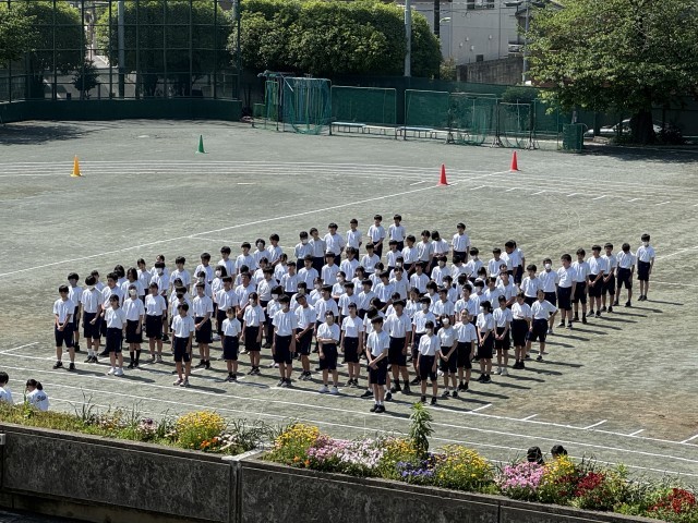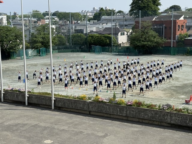 2年生は学年練習で、行進練習、ラジオ体操をしました。
