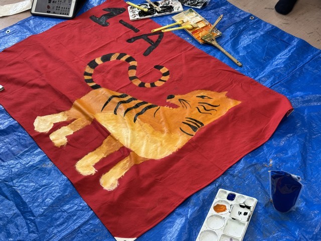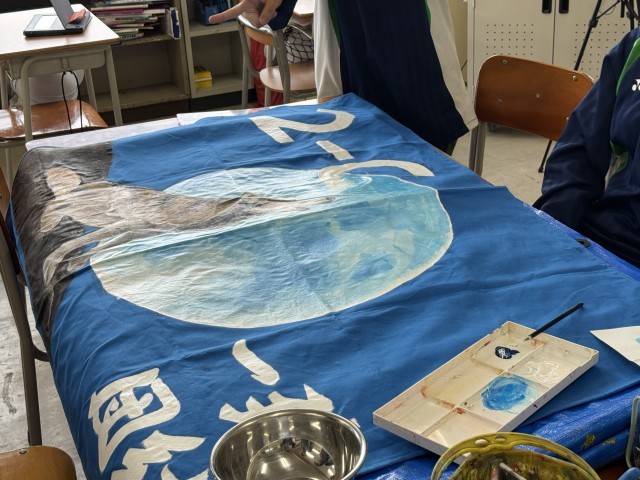 放課後、各クラスで運動会に掲げるクラス旗を作っています。運動会の競技以外にも、運動会を盛り上げるために、一生懸命に取り組んでいます。運動会当日、12枚のクラス旗が校庭を彩ります。楽しみです。