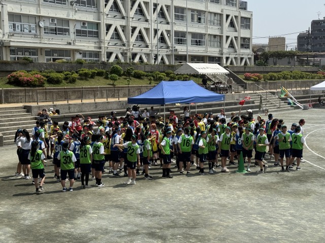 全員リレーでは、生徒たちが声を掛け合いながら、120人以上の生徒が走順通りに整列しています。頼もしいです。