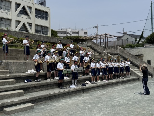 最後に、閉会式の練習をしました。表彰では、吹奏楽部が演奏しました。吹奏楽部の生徒は、開会式、閉会式で活躍していました。閉会宣言の練習をして、本日の予行は終了しました。