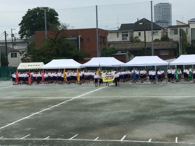 本日、運動会です。開会宣言の後、運動会が始まりました。