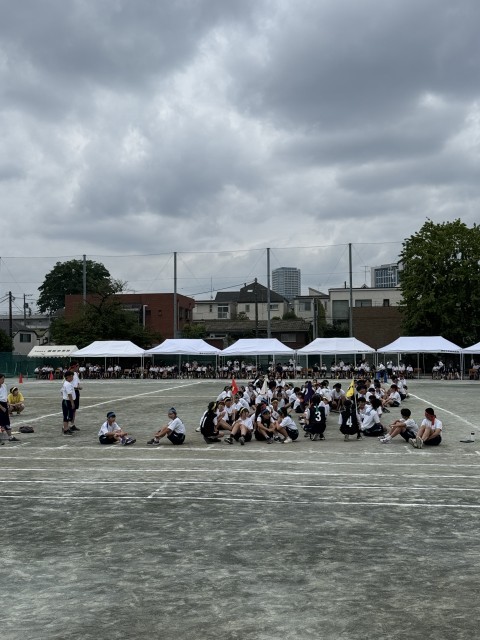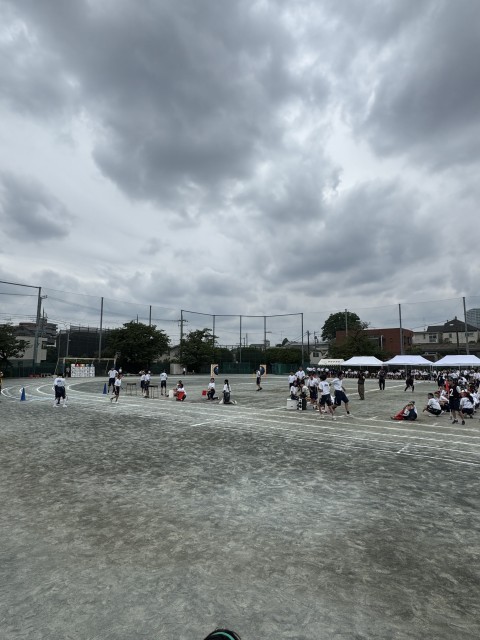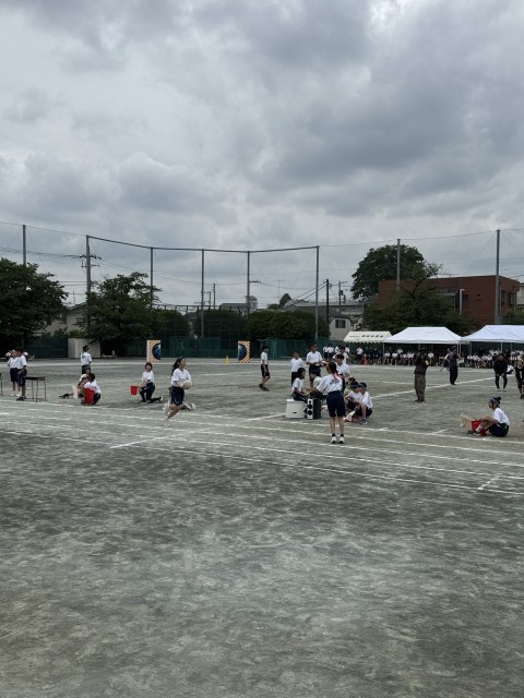 午前中、最後の競技は、生徒会役員が企画した部活動対抗リレーでした。サッカー部、野球部、男女バスケ部、水泳部、バレーボール部、卓球部、テニス部、美術部、吹奏楽部、部活に所属していない帰宅部、先生たちの12団体で競技しました。楽しかった。