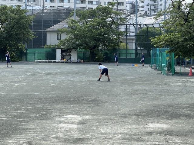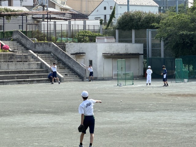水曜日の朝は、野球部が朝練習をしています。部員たちは、次の大会に向けて、熱心に練習しています。