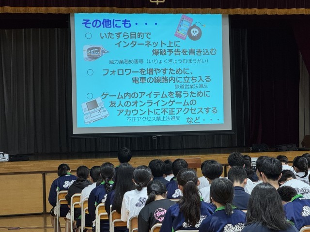 2年生は、セーフティー教室を実施しました。健全育成の一環として非行防止や犯罪の被害に遭わないための知識を身に付けることを目的としています。