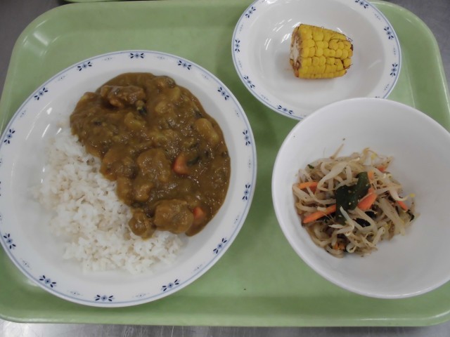 今日のカレーライスには、夏が旬のとまと、なす、さやいんげんが入っています。 夏の日差しをたっぷり浴びて育った夏野菜には、ビタミン・ミネラルがたくさん含まれています。 夏休みまであと1週間、暑い夏もしっかり食べて、元気に2学期を迎えましょう。