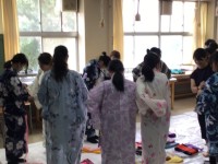 2年生の家庭科の授業で、浴衣の着付けを行いました。日本の伝統文化に触れる良い機会...