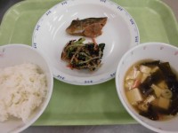 【本日の献立】ごはんさばの味噌煮青菜の塩...