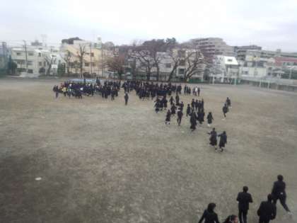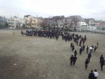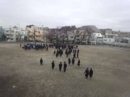 12月18日〔火〕避難訓練を実施しています。本日は、地震を想定した訓練です。今日の訓練では、全校生徒が非常に素早く避難することができました。