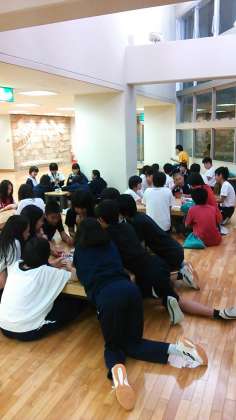 晩ごはん、そしてレク大会で盛り上がりました。みんな元気です。