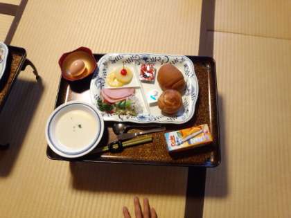 修学旅行2日目の朝です。眠そうな人がたくさんいますが、朝食の時間です。朝もしっかり食べて今日も1日頑張りましょう。今日は奈良に向かいます。