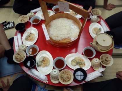 奈良公園内の「むさし野」で昼食です。暑い日のソウメンは最高です!