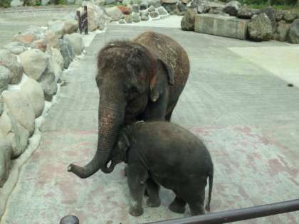 チータにゾウにサイがいます。ゾウは大きいね〜。
