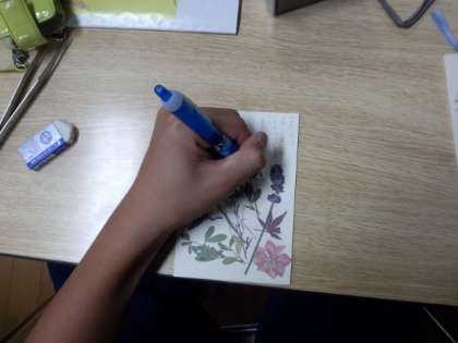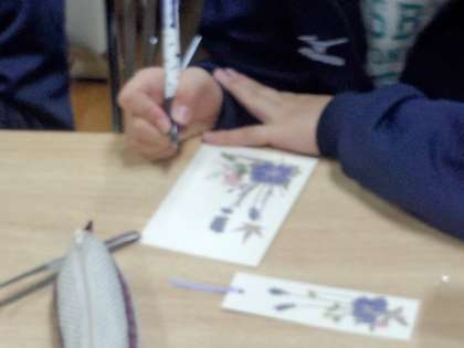ハーブ館の方に来ていただき、ハーブを使った栞と葉書作りを体験しました。どんな作品ができるか楽しみですね。