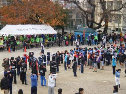 本校校庭をメイン会場に若林・三軒茶屋地区 子ども駅伝大会が開催されました。本校男子バスケット部の代表チームが1位でした。