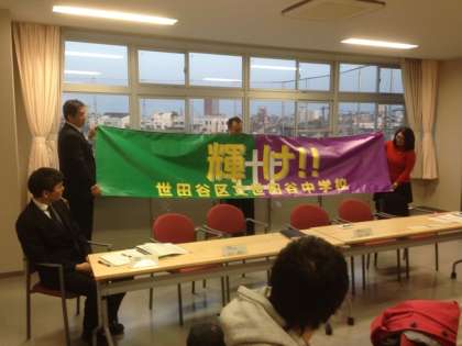 学校運営委員会の中で、運営委員会の予算で購入された横断幕が披露されました。