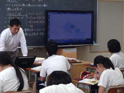 午後は3年生の少人数の数学の授業を参観しました。電子黒板を有効に活用しています。