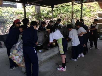 みんなで協力して、何とか完成しました。自分たちで作ったカレーの味は格別です。食べ終わったら道具の片付けです。最後まで手をぬかず、頑張ります。