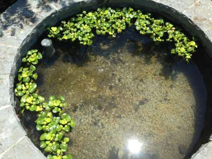 1枚目の写真は、校門を入った左側の丸い池を写したものです。先日からそこでメダカを飼っています。昼休みのひと時、生徒はメダカの泳ぐ姿を熱心に観察しています。