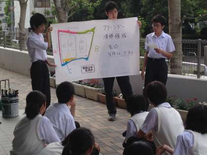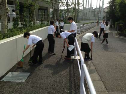 先日の2年生に続き、今日は1年生担当のクリーンデ−でした。生徒会役員を含め58名の生徒が朝7:40分から校舎周辺を清掃しました。