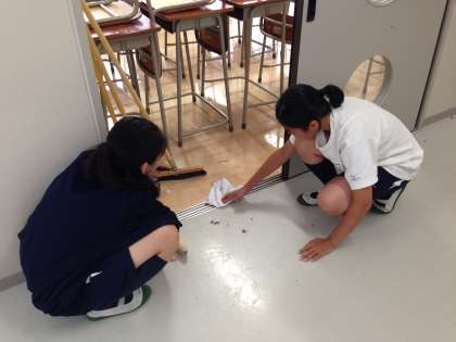 大掃除 公開日 2014/07/17 更新日 2014/07/17 できごと 今日の午後、大掃除を行いました。新校舎になって初めての大掃除です。1学期間の汚れをクラスで協力してきれいにしました。いつまでもきれいな校舎を維持していくために心をこめて清掃をしました。 いいね(0) 学校生活