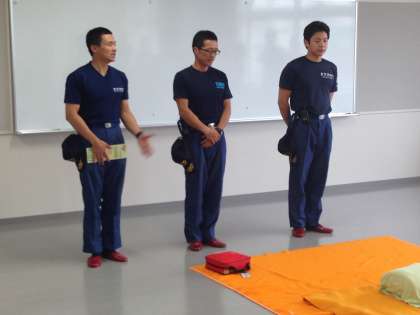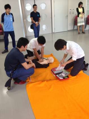 7月18日午後2時から、世田谷消防署松原出張所の署員の方を講師にお招きし、AEDを使用した応急救護の訓練を行いました。万が一の時に、落ち着いて行動できるように先生方も真剣に研修に臨んでいます。