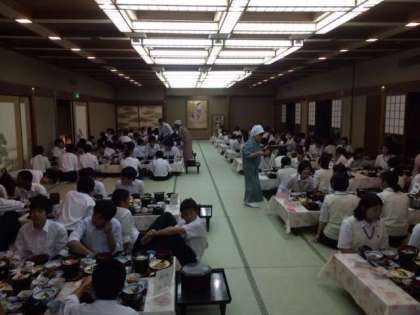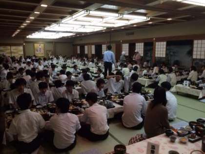 本日の夕食は、京風懐石料理です。ボリュームもあり、男子でも食べきれない子どもが多かったようです。たまり醤油で食べるお造りや、抹茶塩で食べる天ぷらなど、京都の味を堪能しました。