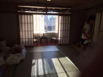シーツや枕カバーを外して布団を畳んでいる部屋もあります。