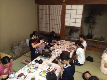 お鍋にある赤だし味噌汁をそれぞれ取り分けて朝食です。昨晩よく寝られたのでしょうか、みんな食欲もあり食べています。