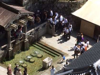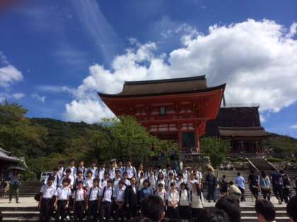清水の舞台からの景色がとてもよかったです。昼食後に仁王門前でクラス写真を撮った後で自由行動。地主神社、音羽の滝に行く生徒や、お土産屋さんに走る生徒など、それぞれ満喫していたようですが、もう少し時間をとってあげてもよかったかな?
