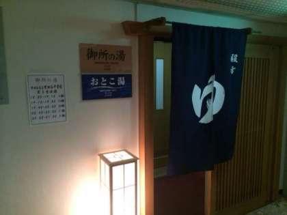 男子は1階にある御所の湯。準天然光明石温泉で、お湯がやわらかく、湯ざめしにくく「つるつる素肌の湯」と言われているそうです。