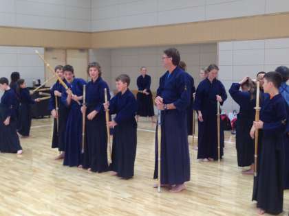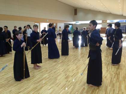 姉妹都市オーストラリアのバンバリー市の小学生(日本の中学校1年生相当)訪問団が来校し、剣道部の練習に参加しました。剣道着に袴姿はとても凛々しく見えました。引率の先生方も参加しました。世田谷中の生徒も心を込めて指導しました。