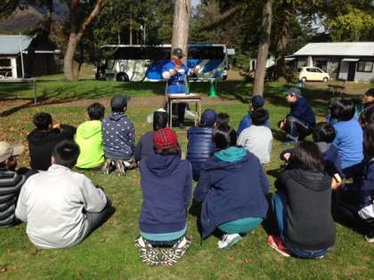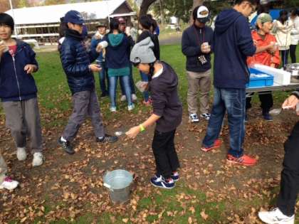 続いて、バター作りに挑戦です。瓶をしっかり降り続けバターを作りました。パンに付けて食べました。その後、牧場の方から「命を繋ぐ大切さ」と様々な命をいただいて生かされていることをわすれず、「食べ物を大切に」というお話を聞きました。